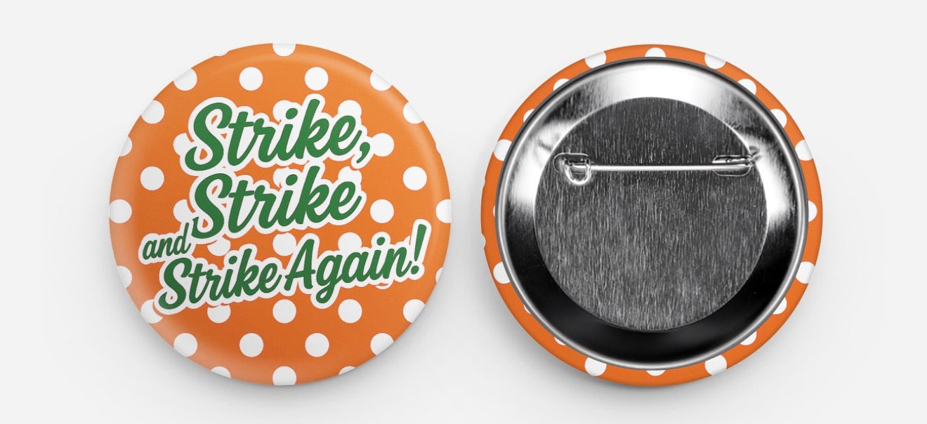 Bring the energy with this fan-favorite button featuring FAMU’s iconic chant! Designed with an orange-and-white polka-dot background and vintage green script, this 2.5” button radiates game-day excitement. A retro piece for Rattlers who live, breathe, and strike again.